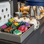 There are allergy-friendly rooms with soundproof windows, and such comforts as an iron and ironing board, and climate control. They are appointed with a writing desk, and also feature a minibar fridge and coffee/tea making equipment. The safe bathrooms include a roll-in shower, and amenities such as dressing gowns.